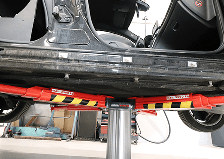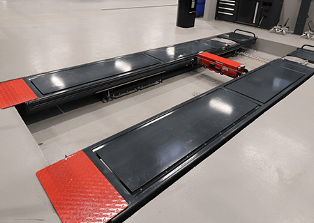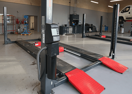 med direkte indkørsel fra ankomsthal er der afsat et område til at møde kunden i øjenhøjde og gennemgå bilen inden service og reparation. For at optimere brugen af denne arbejdsstation er pladsen også indrettet til 4-hjulsudmåling.Det mekaniske værksted