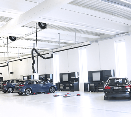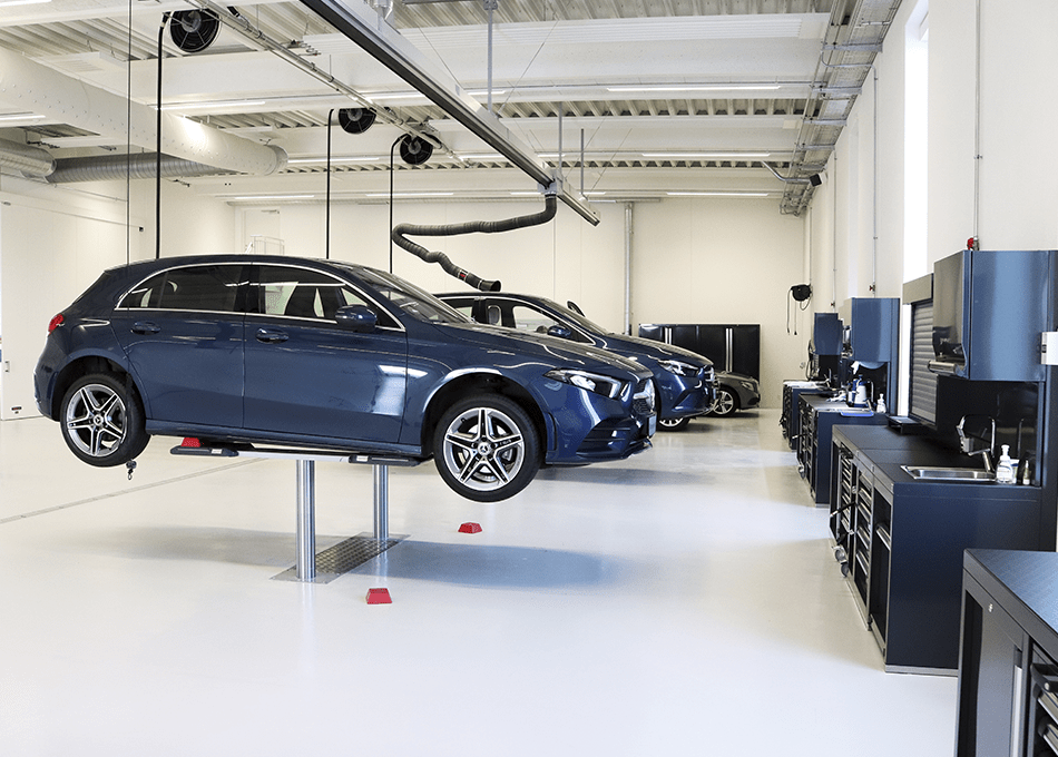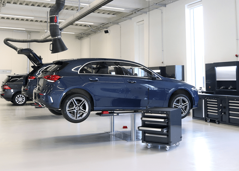 Kun udstyr der er godkendt af Mercedes-Benz kan komme ind på værkstedet. Valget af leverandør af værkstedsudstyr til værkstedet er faldet på STENHØJ DK – bl.a. grundet STENHØJs store sortiment af værkstedsudstyr med Mercedes Benz godkendelser.