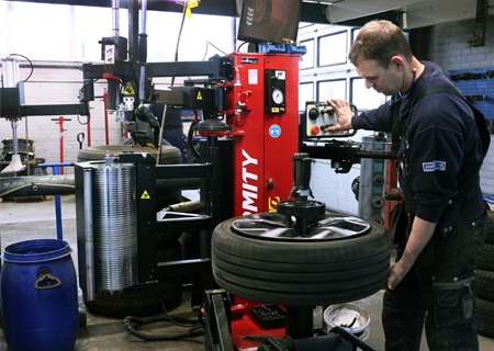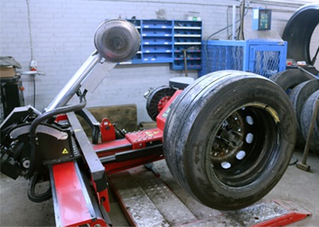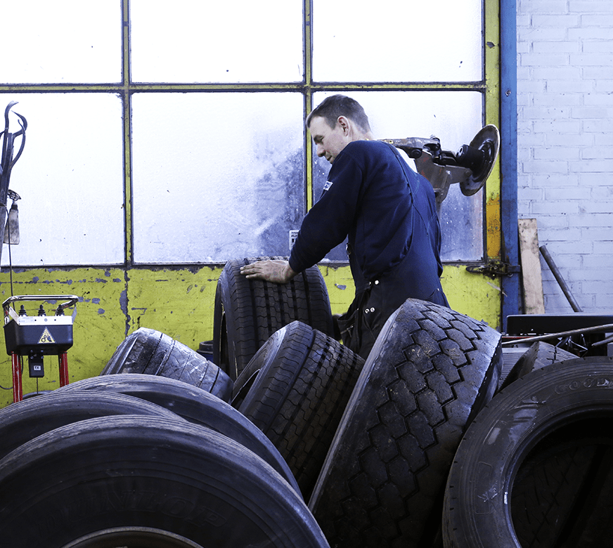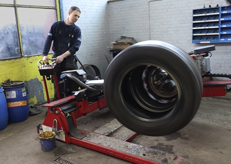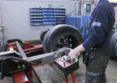 På værkstedet triller der også hjul ind til den tunge sektor så som traktorer, entreprenørmaskiner og lastbiler.