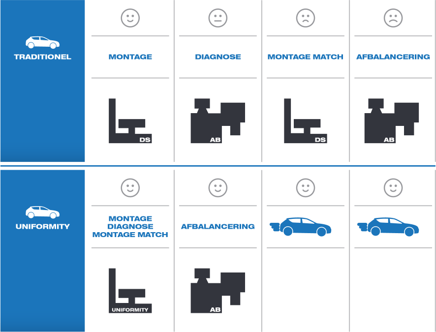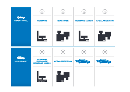 Alt dette sikrer at du hurtigt og nemt kan diagnosticere vibrationsproblemer og skabe det bedste montagematch mellem dæk og fælg, hvilket resulterer i størst mulig komfort for din kunde.